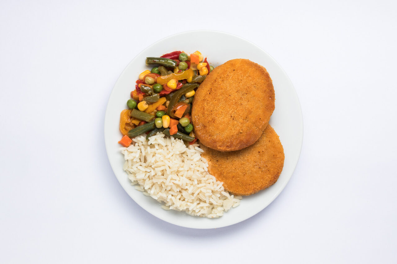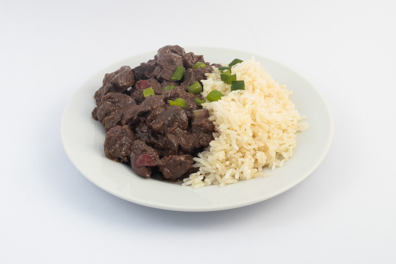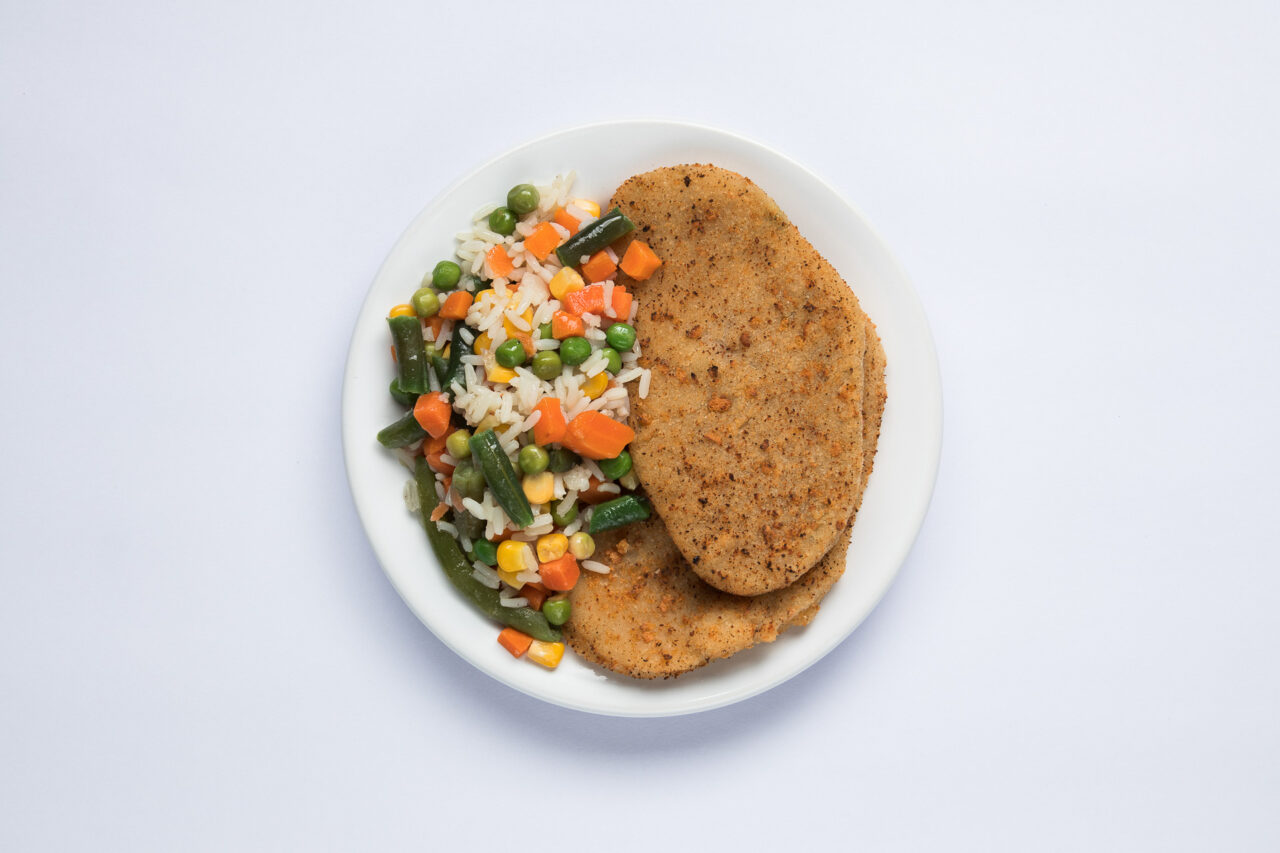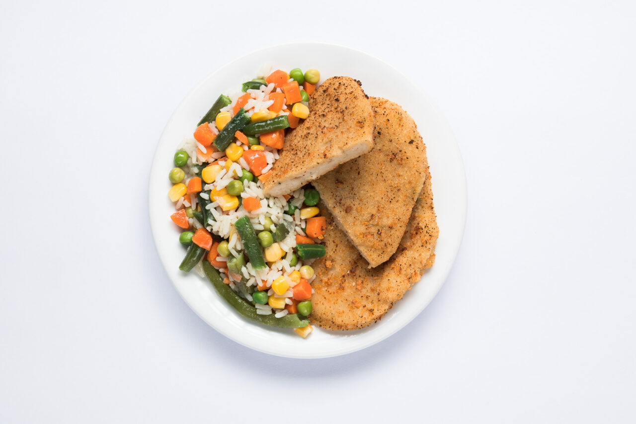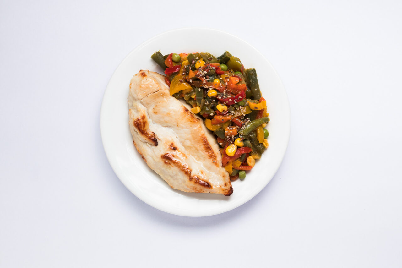 – Tallarines con salsa de verdeo y cubos de pollo.