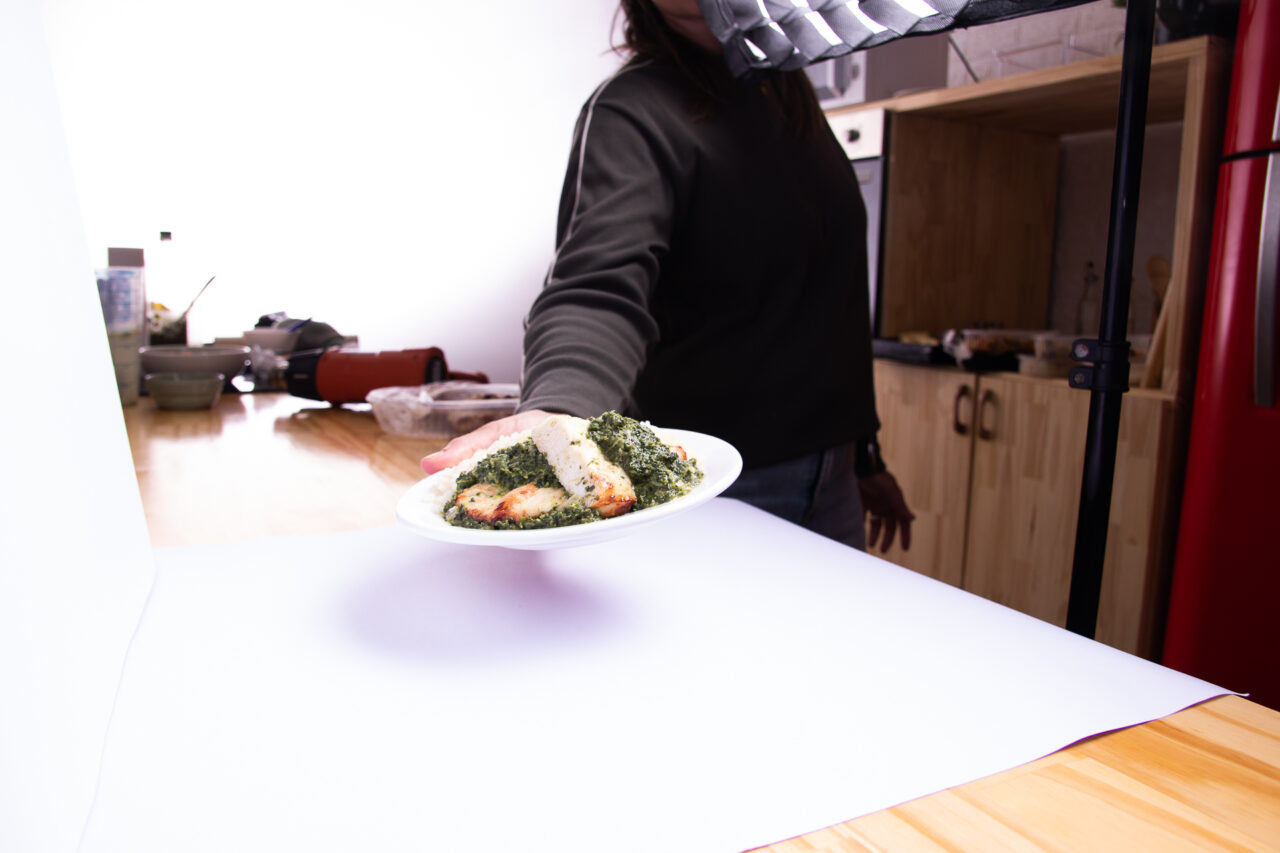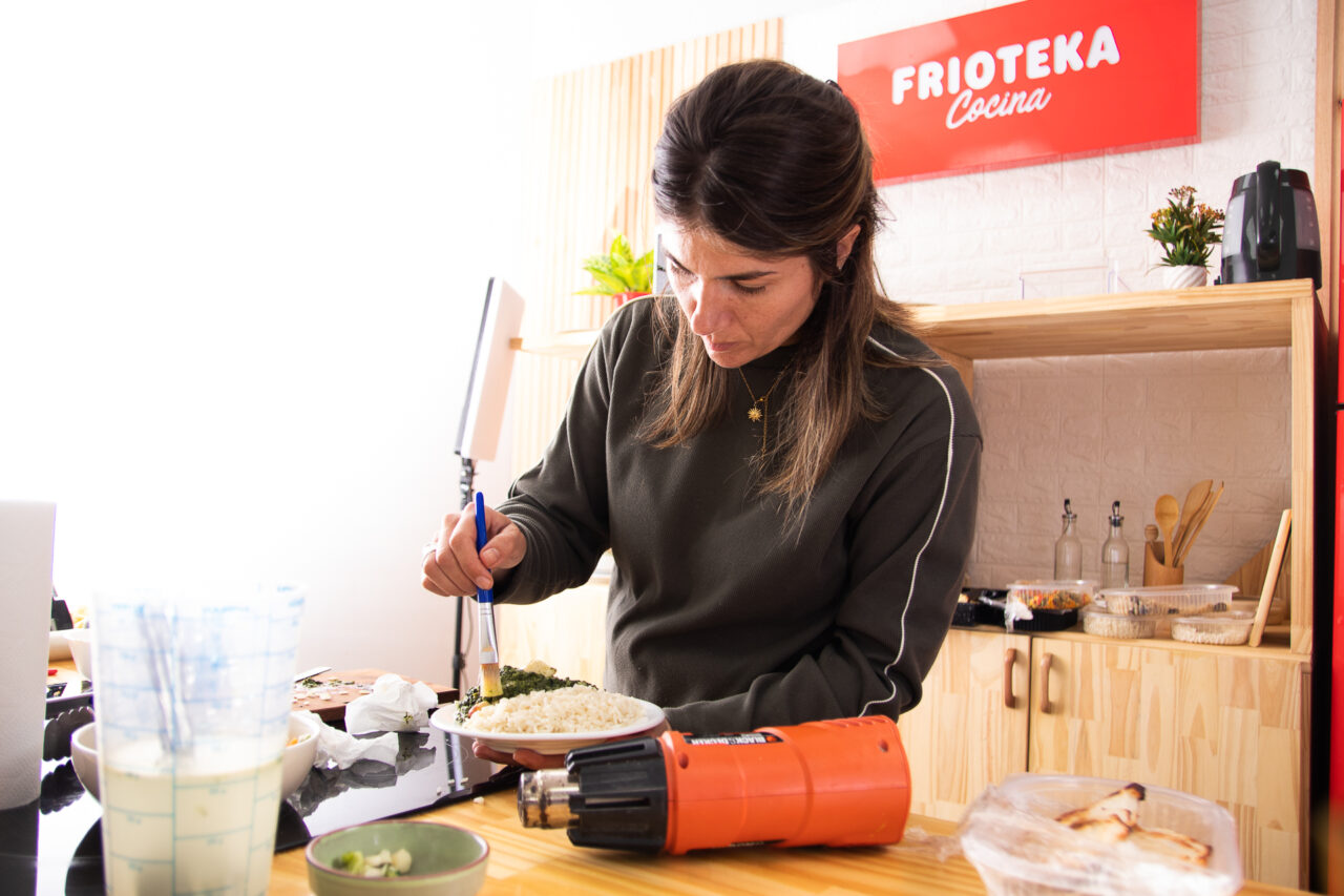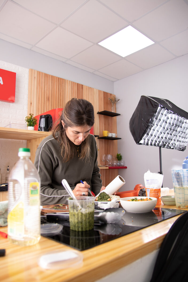 Para lograr este tipo de fotos, se trabajó con pistolas de calor que permitieron mantener calientes las salsas y los quesos derretidos. Además, se utilizaron dos sets de iluminación: uno con caja de luz sobre una mesa baja de madera, y otro en la cocina de TV Frioteka, donde, con la ayuda de una escalera y pantallas reflectoras, se realizaron las tomas en vista cenital.